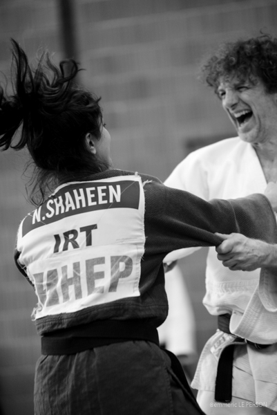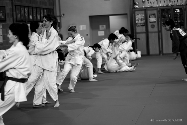 Je considère cette fois, que ma place sur le tatami aurait été déplacée. C’est donc Emmanuelle DE OLIVEIRA qui a été missionnée pour le reportage. Elle a pu témoigné que le lâcher-prise au niveau de l’expression du ressenti était important pour elles. Par trop brimées, là aussi, par des codes trop stricts d’origine masculine, que la pratique du judo présuppose. C’est une belle leçon en fait. Se rendre compte que le culte de la maitrise de soi en art-martial, nous prive de profiter pleinement de nos émotions. Quelle leçon !