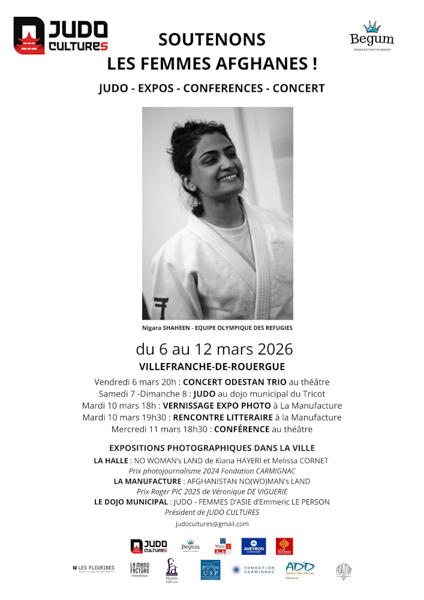 A ce stade, il faut que je vous parle d’une femme qui compte beaucoup pour la réussite de cet évènement. Je veux parler de Mélissa CORNET. Elle est chercheuse, juriste. Pour moi c’est la plus grande spécialiste mondiale du statut de la femme en zone de guerre. Elle a aussi remporté le Prix du photojournalisme de la Fondation Carmignac avec la photographe Kiana HAYERI. Alors qu’elle est à Kaboul sous les bombardement pakistanais, elle doit rentrer pour notre semaine afghane. C’est une femme de parole. Coincée au hub de Dubaï, par la guerre en Iran, elle fini par rentrer chez elle à 48h de sa venue. Pour cette citoyenne du monde, chez elle c’est en ce moment Tbilissi en Géorgie. Elle en a vu d’autres pourtant, mais là c’est le vol de trop. L’essentiel c’est qu’elle soit en vie, le reste n’a aucune importance pour nous. Son exposition à La Halle de Villefranche-de-Rouergue est déjà retentissante.
